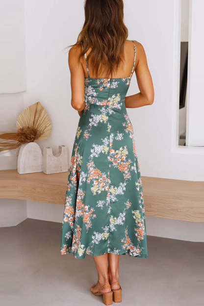 Dreamers Satin Floral Tie Up Slit Midi Dress