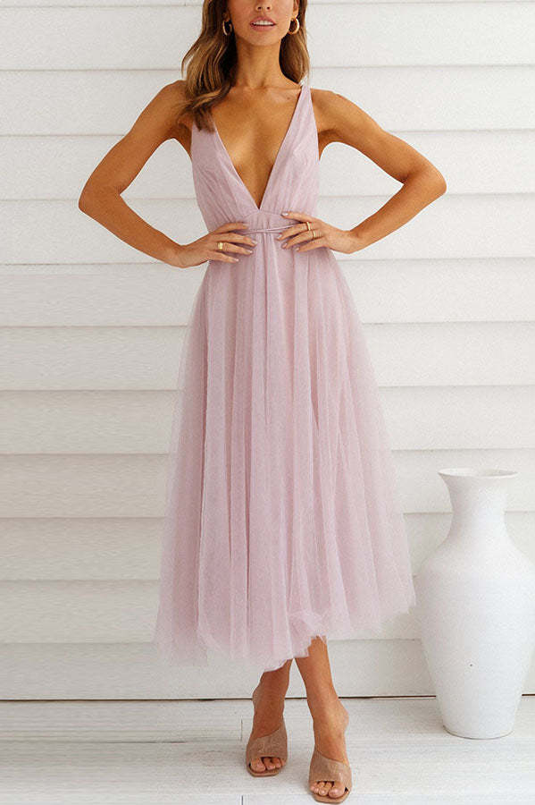 Feeling Romantic V Neck Tulle Midi Dress