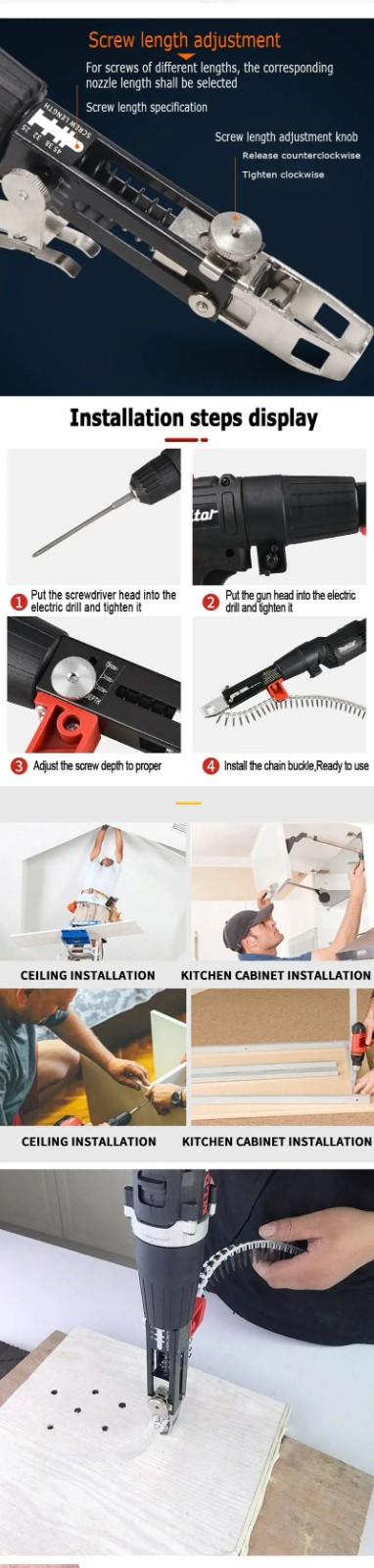 đ ÂĄDescuento del 50% en todos los productos!đ§ Adaptador automĂĄtico de pistola de clavos con cadena de tornilloâš